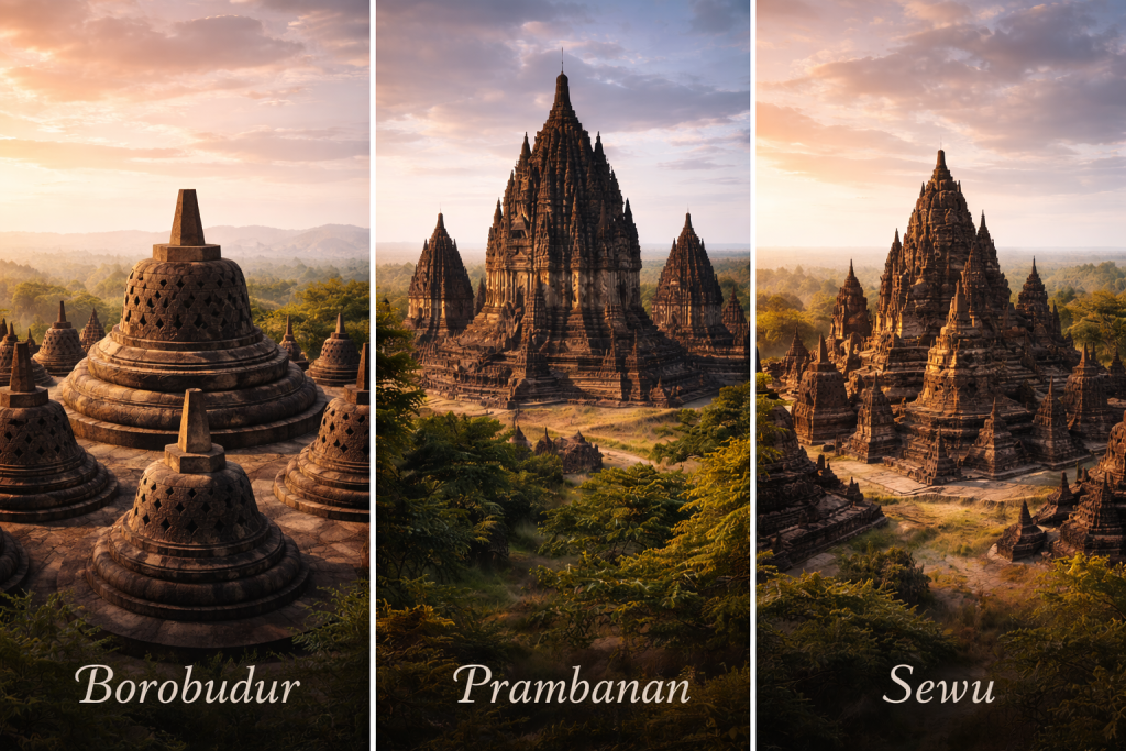Ketiga candi tersebut dibangun pada masa klasik di Pulau Jawa dan berada dalam wilayah yang relatif berdekatan. Walaupun berasal dari latar keagamaan yang berbeda, yakni Buddha dan Hindu, keberadaan Borobudur, Prambanan, dan Sewu menunjukkan bahwa masyarakat pada masa itu mampu hidup dalam suasana toleransi. Hal ini menjadi bukti bahwa perbedaan keyakinan tidak menghalangi berkembangnya kehidupan sosial, budaya, dan seni yang maju. Dalam konsep “Dalam Satu Pandang”, perbedaan tersebut justru dipandang sebagai kekuatan yang membentuk identitas peradaban Nusantara.
